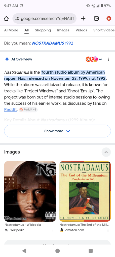 ‘ I’M NOT SUPPOSE TO TALK ABOUT RAPPERS RIGHT NOW EITHER, BECAUSE I CHOSE TO NOT LISTEN TO MUSIC LYRICS THIS YEAR, I LISTENED TO THIS RAPPER WHOM SPOKE OF THE NASTRADAMUS AFFECT/EFFECT ON SOCIETY’ RAPPED NASTRADAMUS ‘ AND NIGGA ALL I NEED IS ‘ ONE MIC ‘; OTHER GREAT RAP SONG’S , ‘ YOU OWE ME ‘; DATED SINGER KELIS FAMOUS FOR ‘ I HATE YOU SO MUCH RIGHT NOW ‘; AND ‘ BOSSY ‘,!!!!!!$$$$$$$$$$$$$$$$$$$$$$3/16/2026